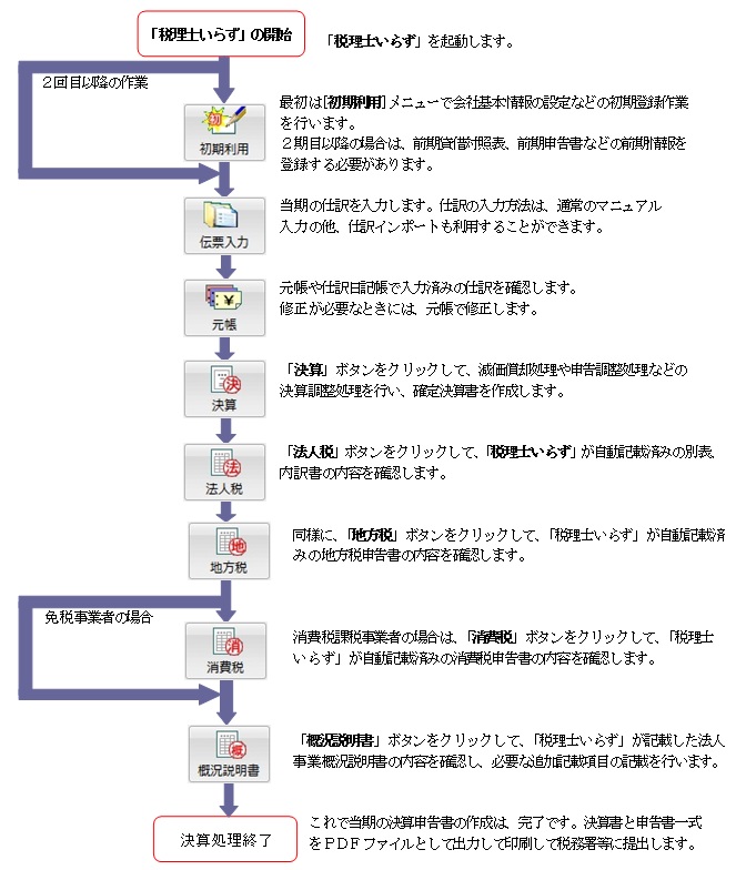 標準的な決算・申告処理は、ツールバーのボタンを左から順番にクリックし実行するだけで、