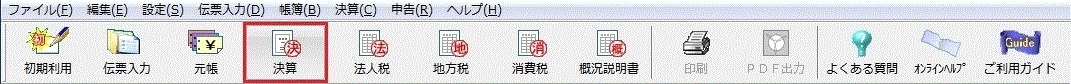決算調整処理が完了すると、確定決算書が作成されて、決算書ボタンがクリック可能となります。