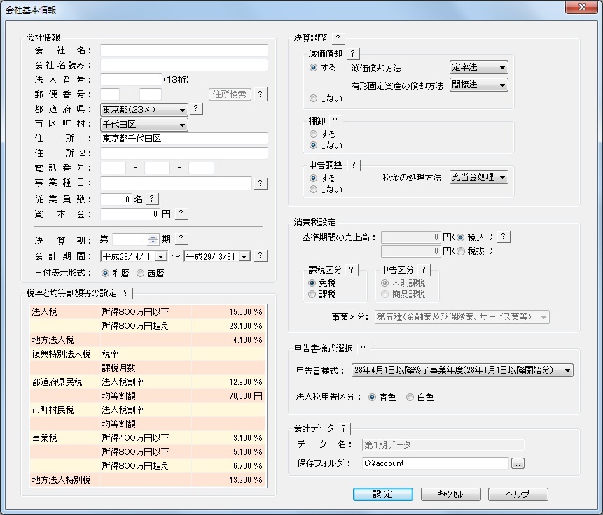 [初期利用]を選択すると、最初に[会社基本情報]ダイアログが表示されます。