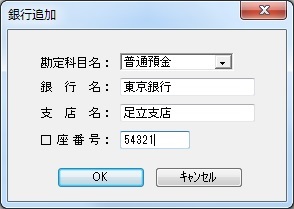 「OK」ボタンをクリックすると、入力した銀行の情報を登録し、この画面を終了します。
