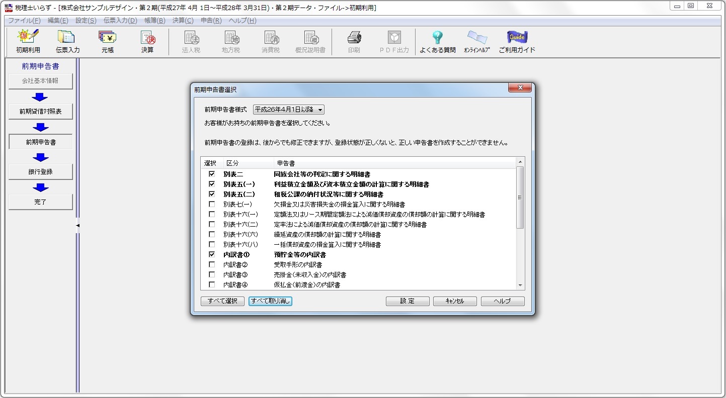 ・前期申告書の選択