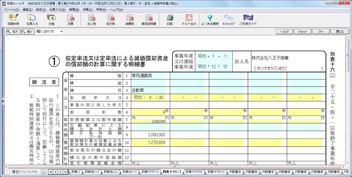 ここでは、前期の法人税申告書の別表、内訳書のなかで、期末残高等の当期申告書への引継ぎ