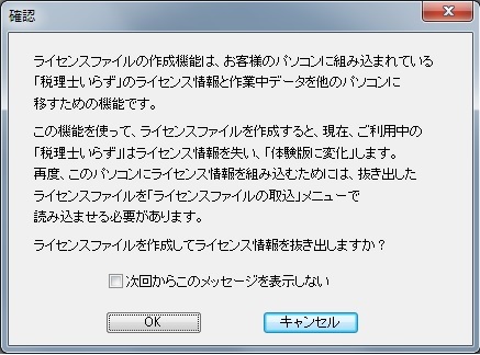 (5)ライセンスファイル削除の確認メッセージが表示されます。(OKを選択します)