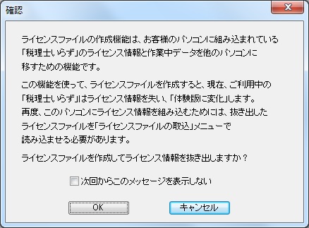 また、ライセンスファイルを取り込んだパソコンのライセンスファイルは、完全に削除されます。