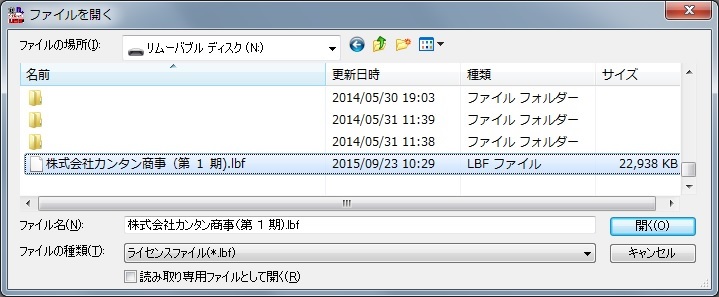 [名前を付けて保存]ダイアログでは、ライセンスファイルの拡張子が、