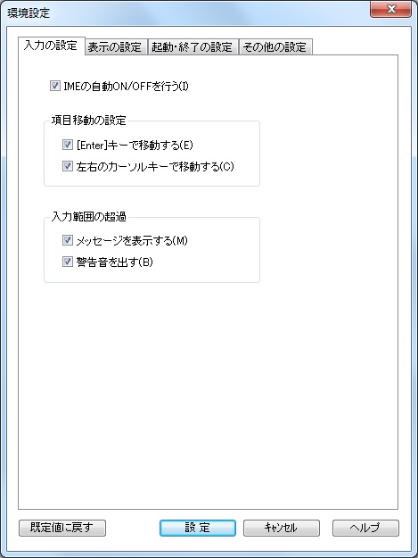 「既定値に戻す」ボタンをクリックすると、それぞれの設定グループ毎に、インストール直後の