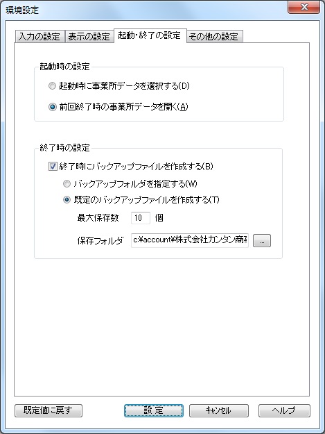 既定の設定では、終了時に、会社名\バックアップ フォルダに、