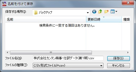 外部保存する仕訳データファイル名を指定するか、既定の設定のファイル名で保存します。