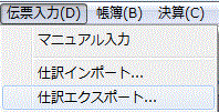 1.「伝票入力」メニューの「仕訳エクスポート」を選択します。