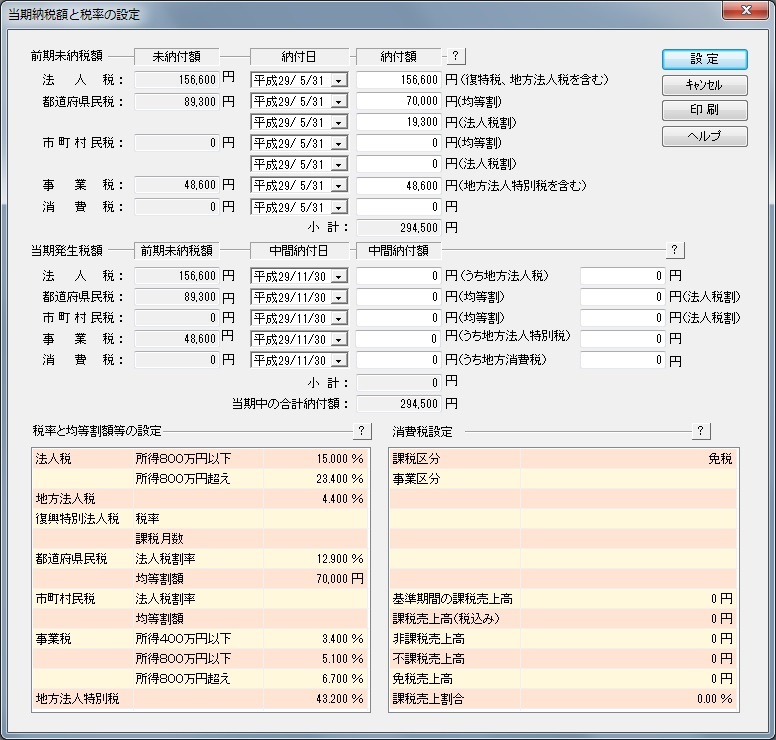 [当期納税額と税率の設定]ダイアログにて、画面右下の「課税区分」の