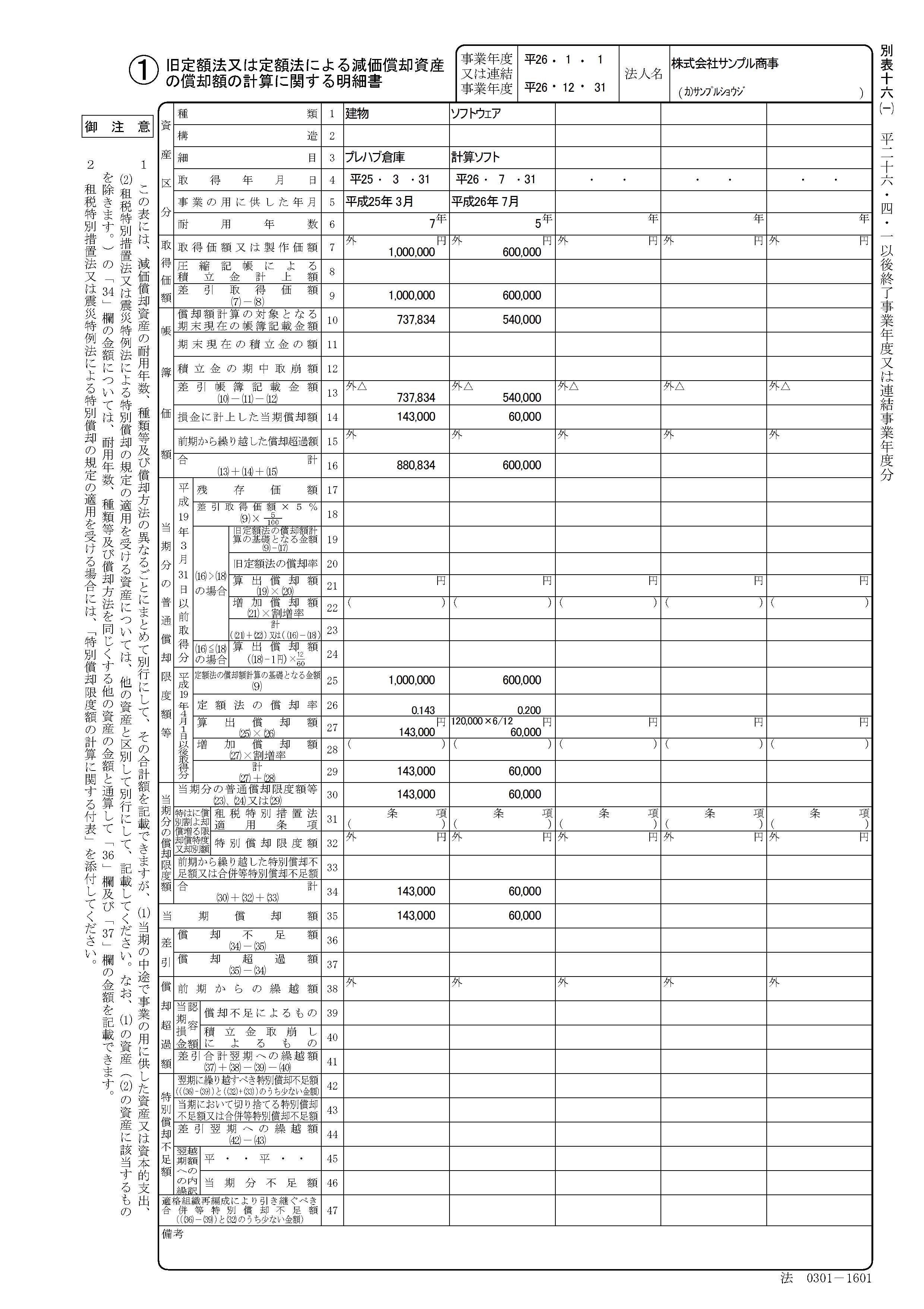 別表十六(一) 旧定額法又は定額法による減価償却資産の償却額の計算に関する明細書