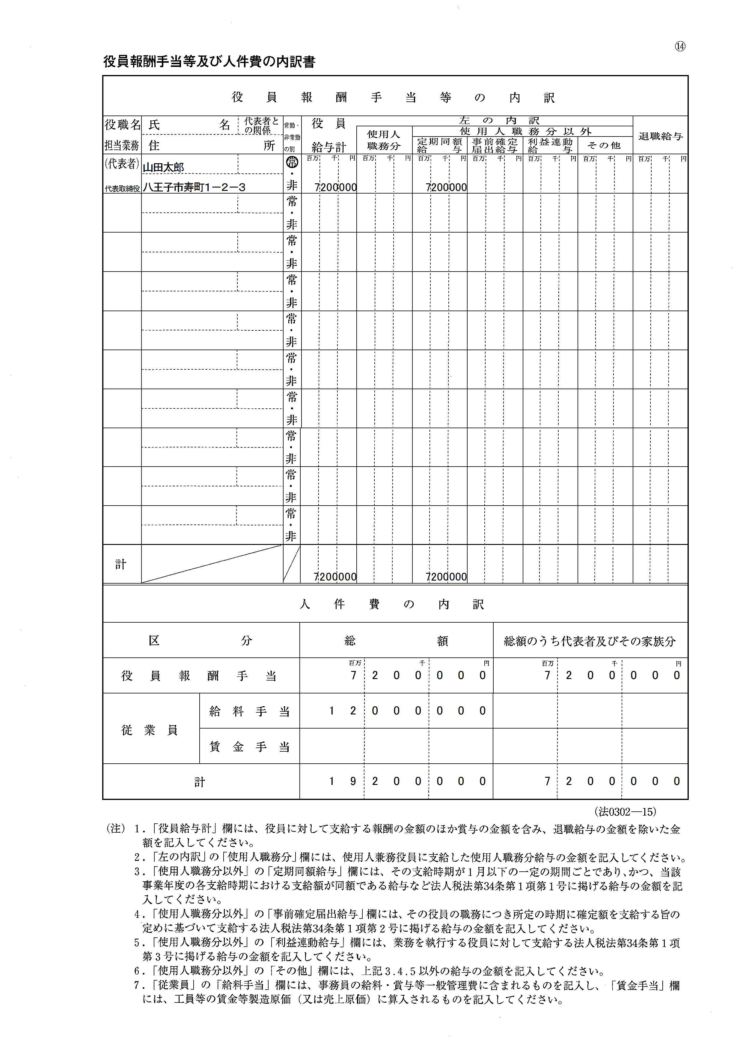 法人税申告書の内訳書サンプルイメージ