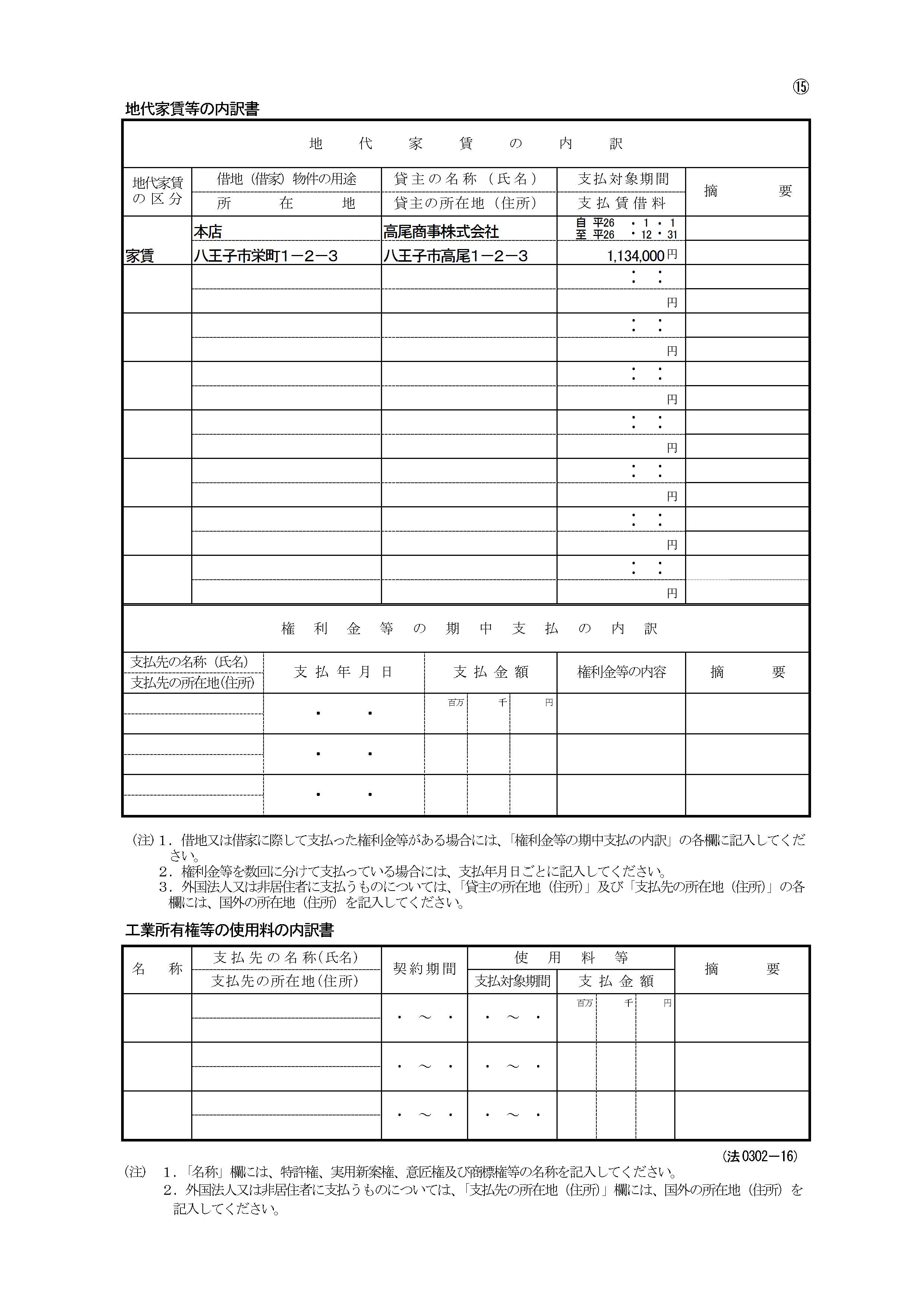 「税理士いらず」は、下段の「権利金等の期中の支払の内訳」の表の記述は