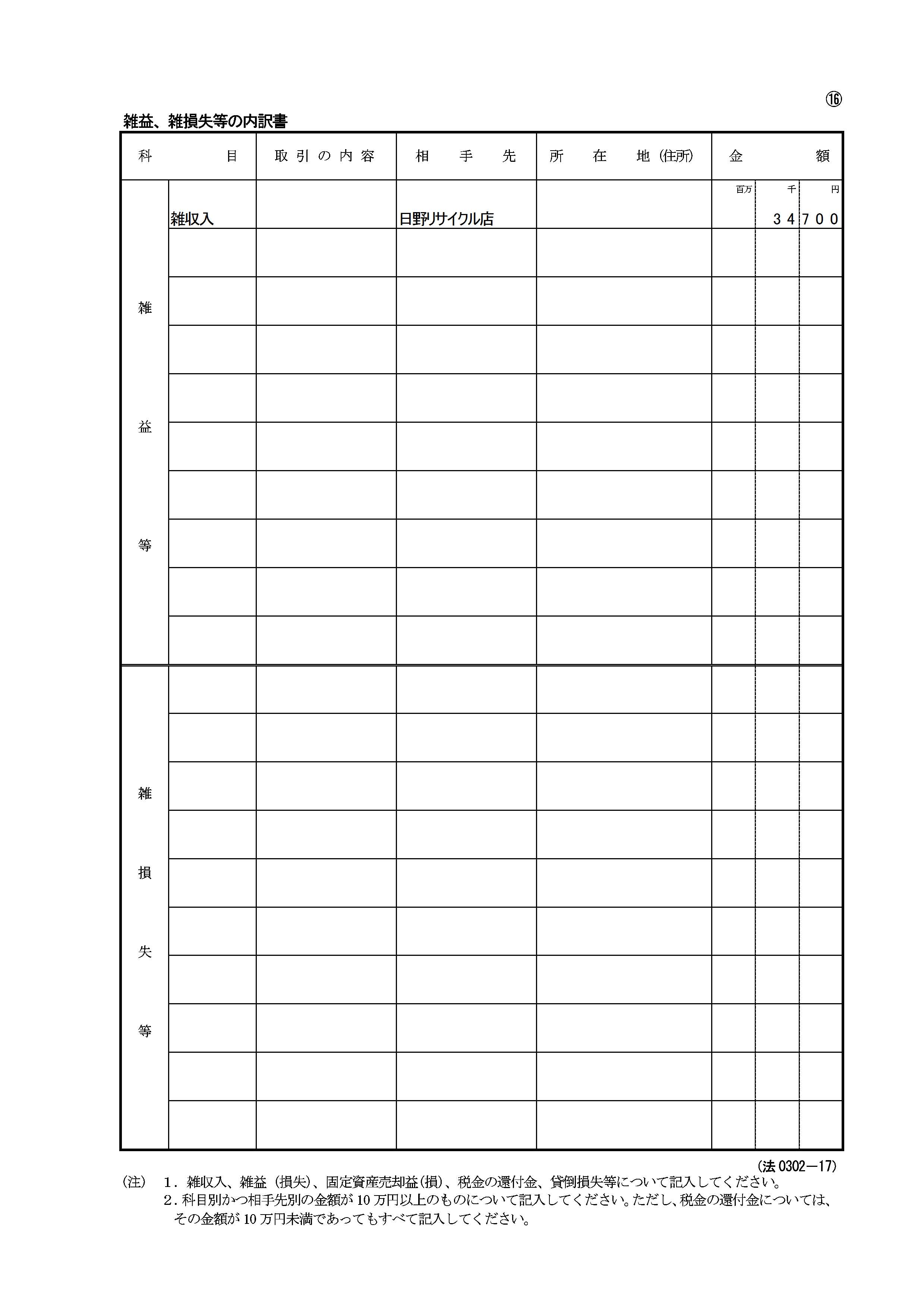 内訳書O 雑益、雑損失等の内訳書