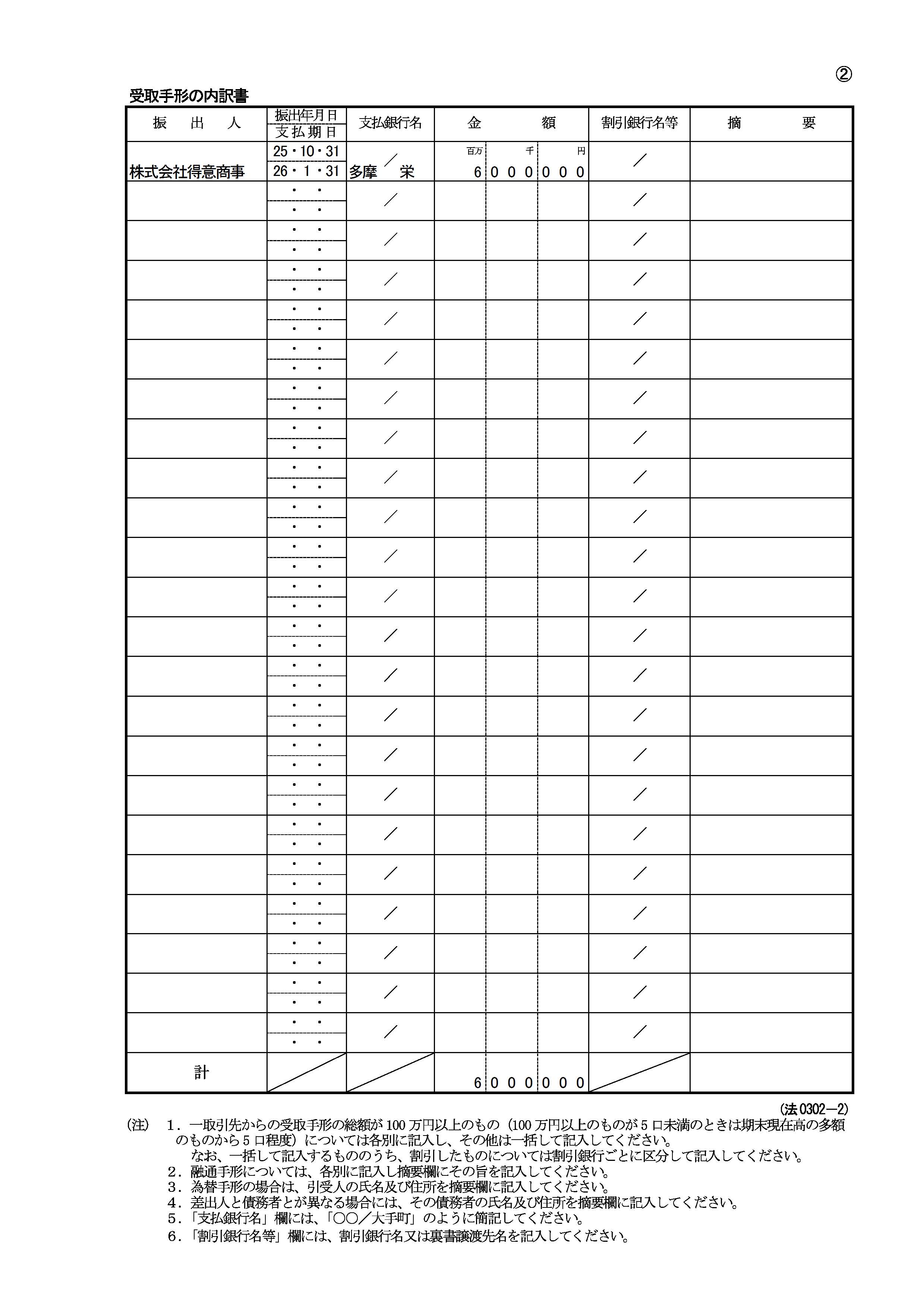 内訳書A 受取手形の内訳書