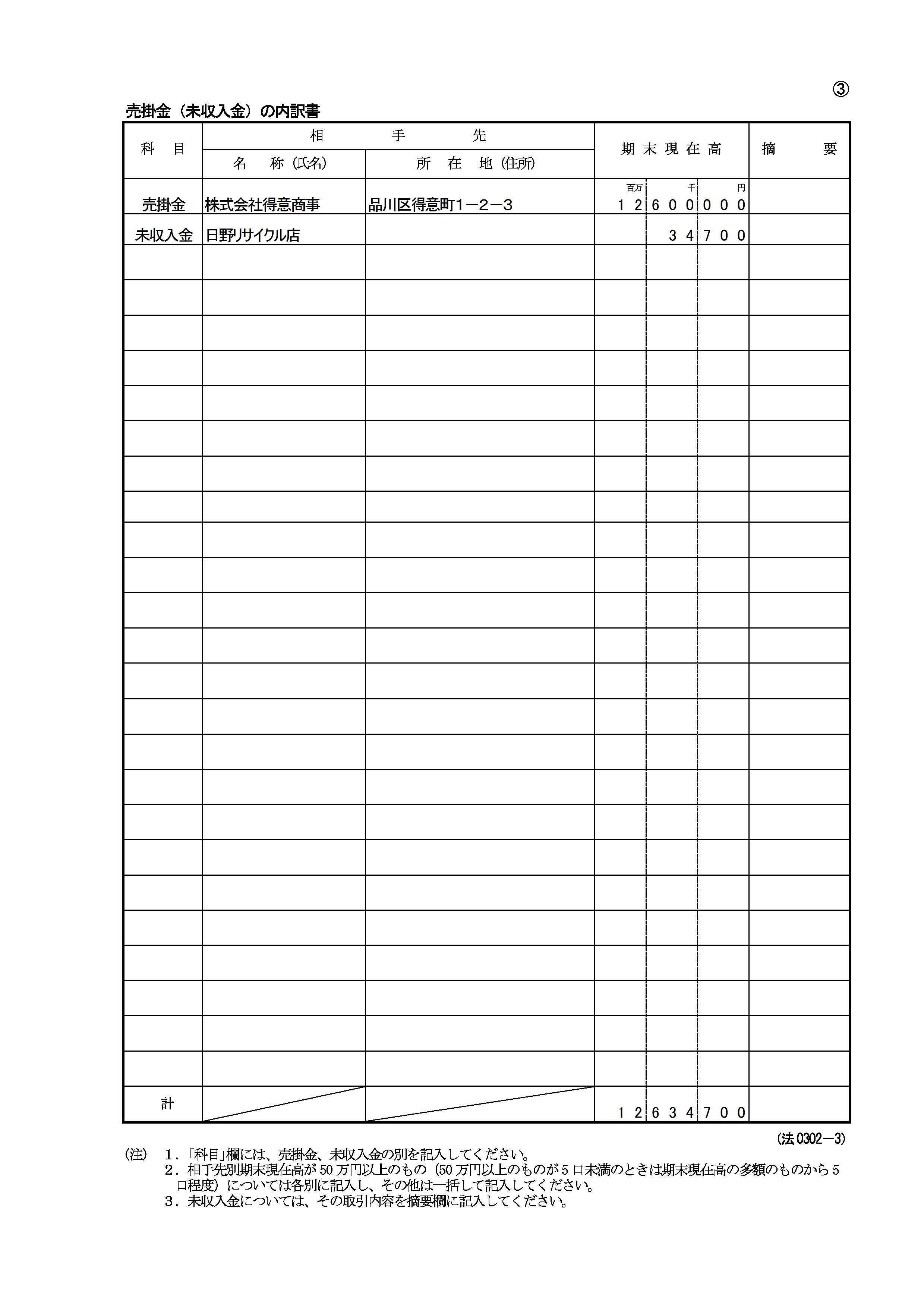 内訳書B 売掛金(未収入金)の内訳書