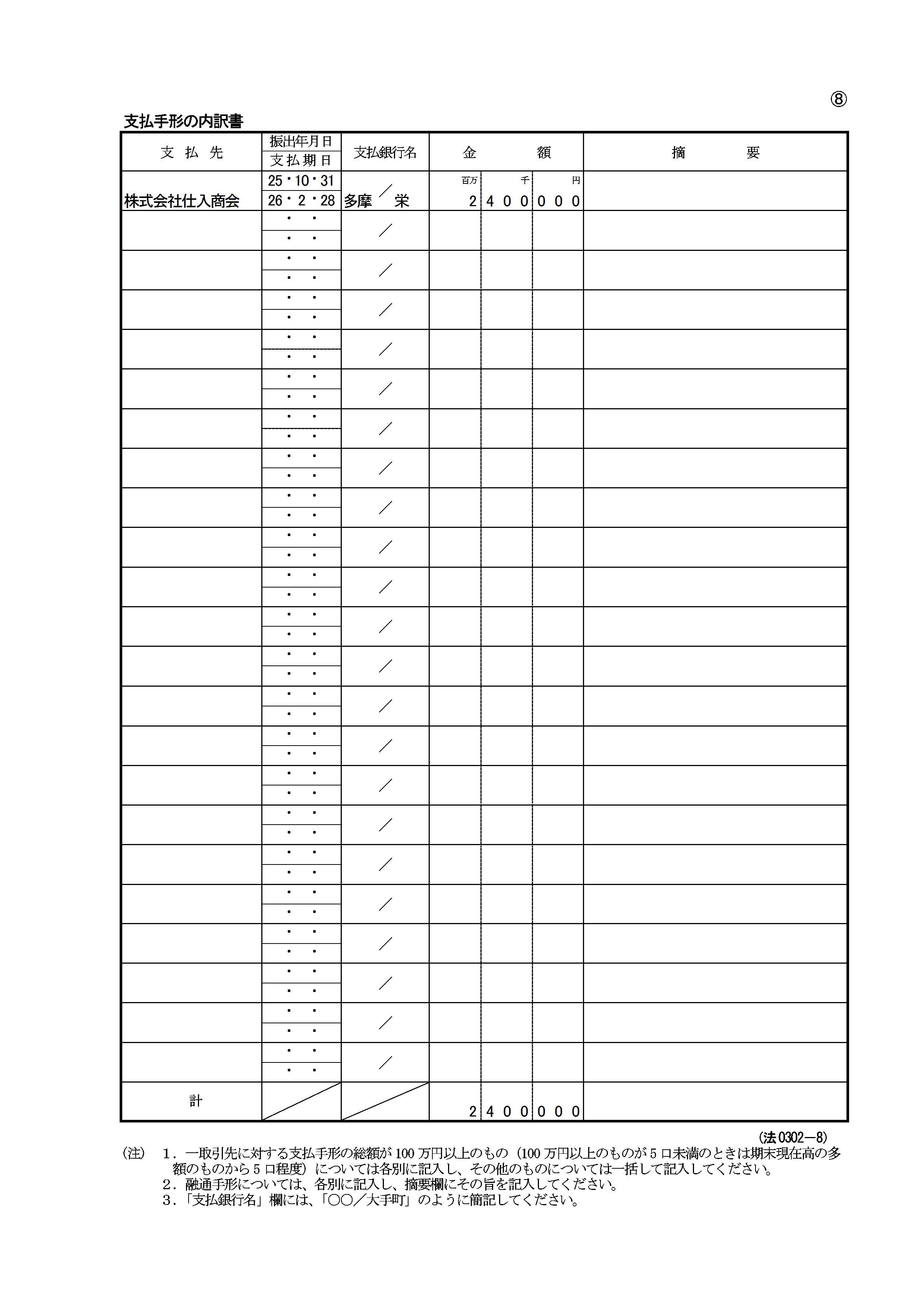 内訳書G 支払手形の内訳書